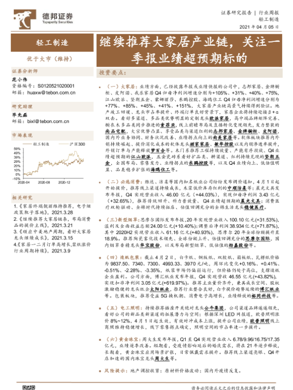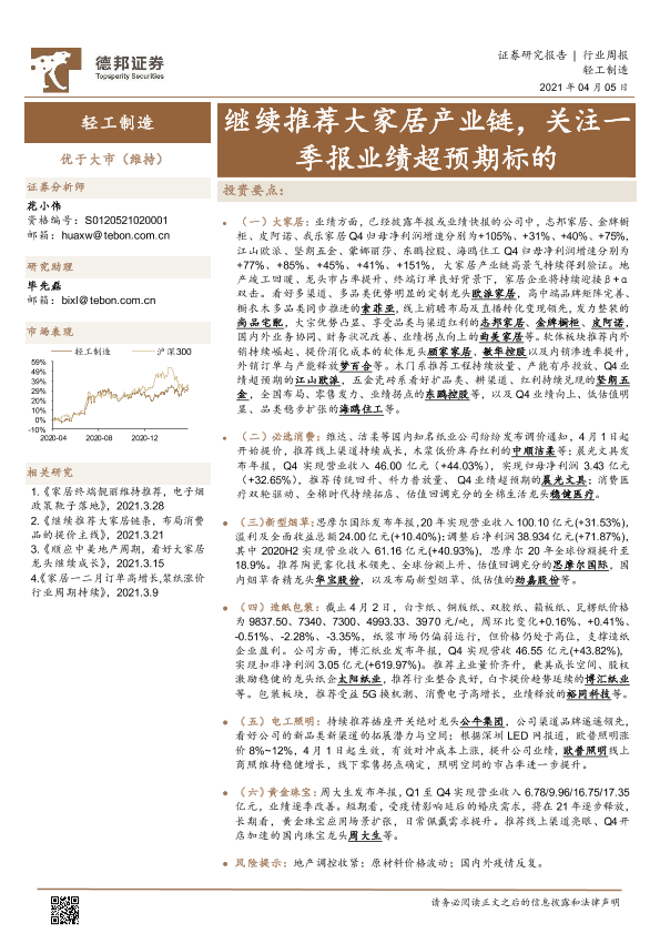 【德邦证券】【20210405】20210405-德邦证券-轻工制造行业周报:继续推荐大家居产业链,关注一季报业绩超预期标的-16页