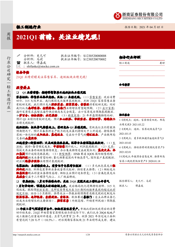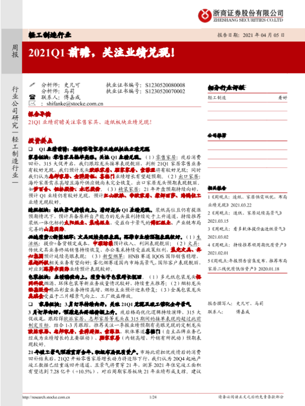 【浙商证券】【20210405】2021Q1前瞻,关注业绩兑现!-24页
