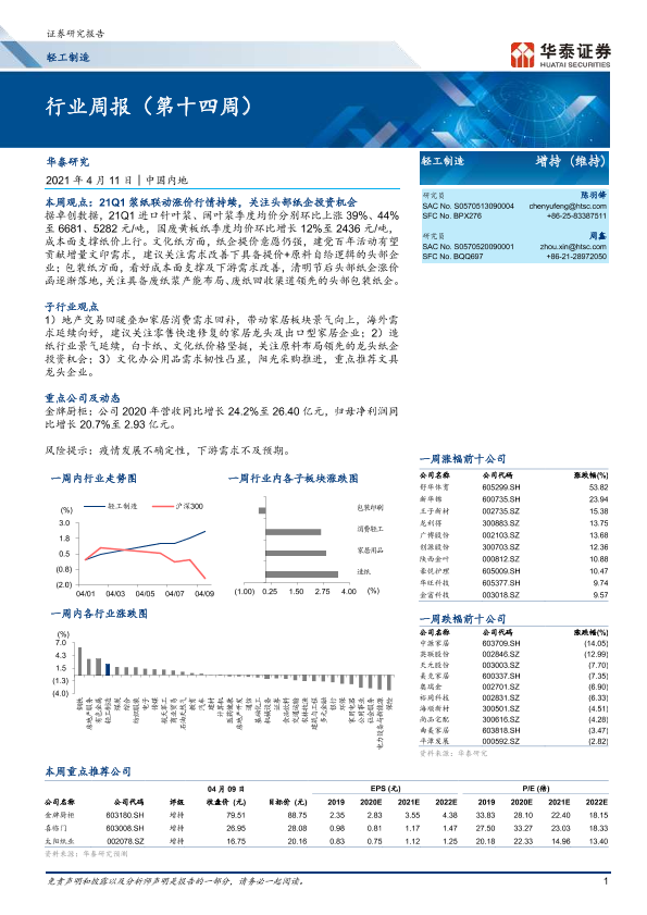 【华泰证券】【20210411】20210411-华泰证券-轻工制造行业周报(第十四周)-14页