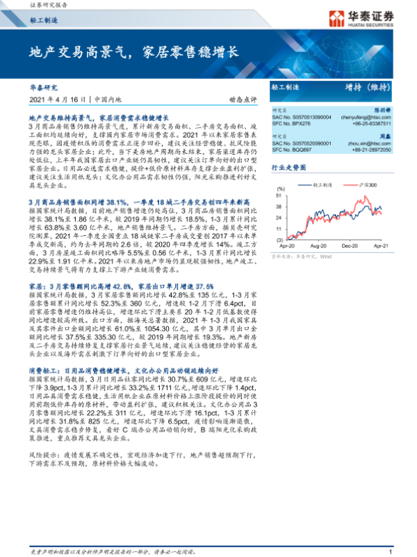 【华泰证券】【20210416】轻工制造:地产交易高景气,家居零售稳增长-6页