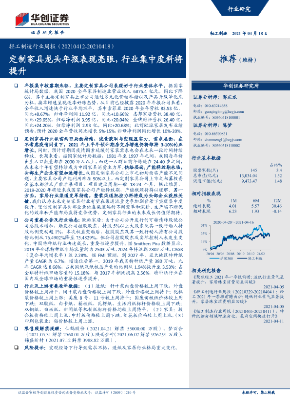 【华创证券】【20210418】20210418-华创证券-轻工制造行业周报:定制家具龙头年报表现亮眼,行业集中度料将提升-14页