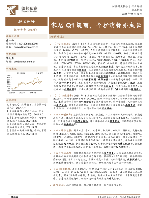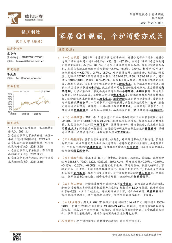 【德邦证券】【20210418】20210418-德邦证券-轻工制造行业周报:家居Q1靓丽,个护消费亦成长-17页