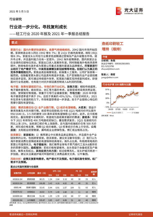 【光大证券】【20210505】轻工行业2020年报及2021年一季报总结报告:行业进一步分化,寻找复利成长-27页