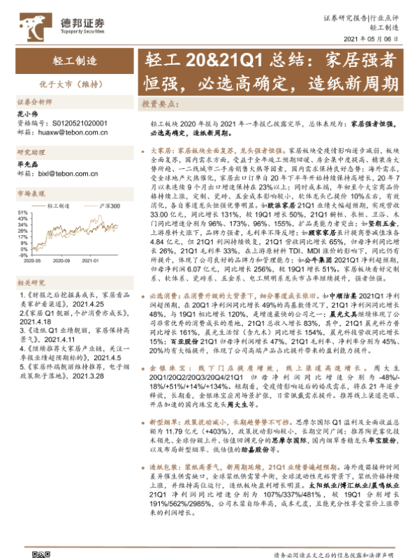 【德邦证券】【20210506】轻工20&21Q1总结:家居强者恒强,必选高确定,造纸新周期-11页