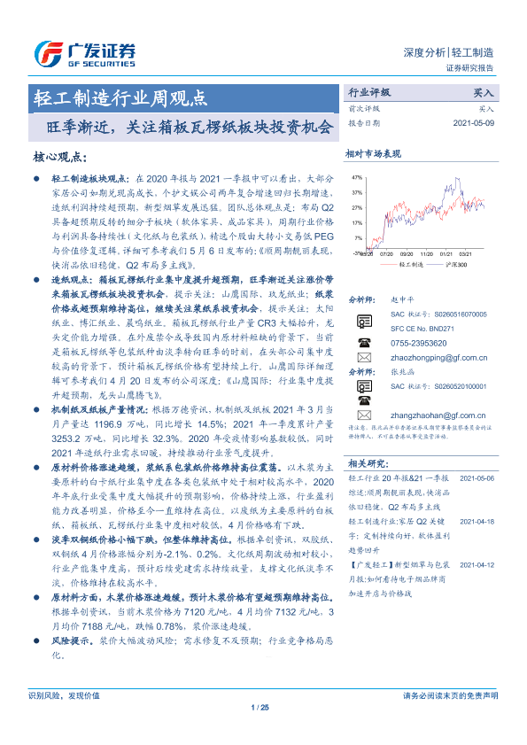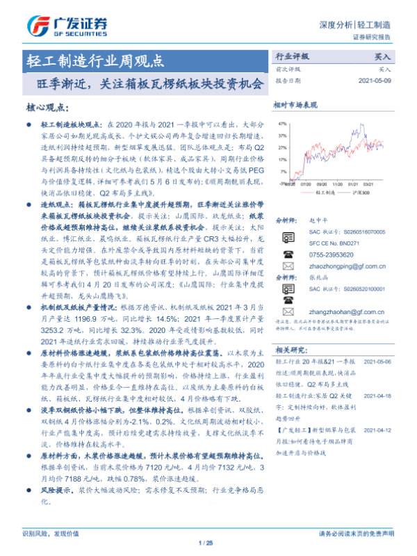【广发证券】【20210509】20210509-广发证券-轻工制造行业周观点:旺季渐近,关注箱板瓦楞纸板块投资机会-25页