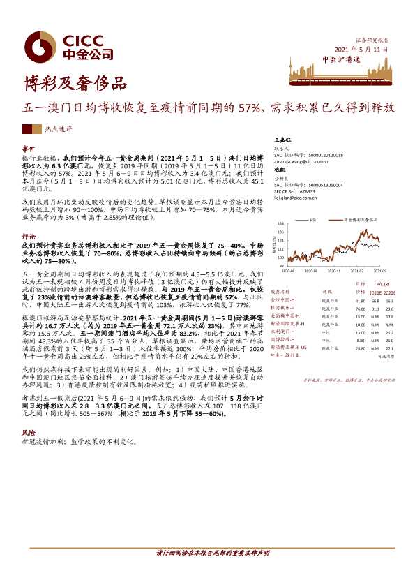 【中金公司】【20210511】20210511-中金公司-博彩及奢侈品行业:五一澳门日均博收恢复至疫情前同期的57%,需求积累已久得到释放-7页