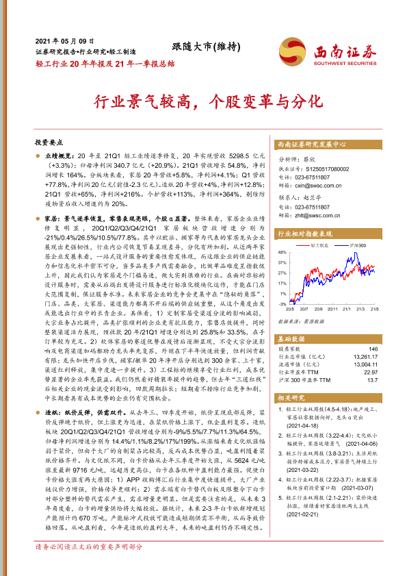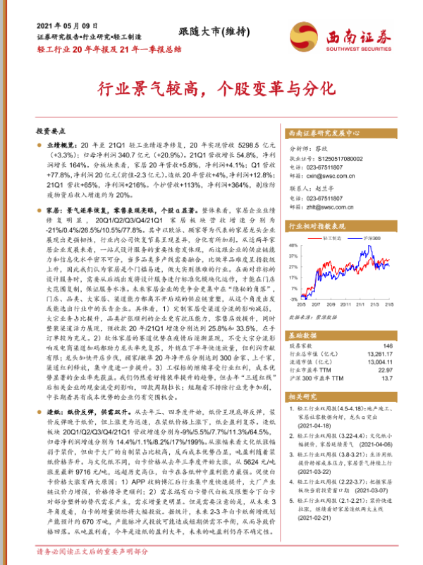 【西南证券】【20210509】轻工行业20年年报及21年一季报总结:行业景气较高,个股变革与分化-31页