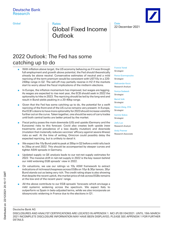 【德意志银行研究部 (Deutsche Bank Research)】【20211222】德银-全球投资策略-2022年展望:美联储需要迎头赶上-87页