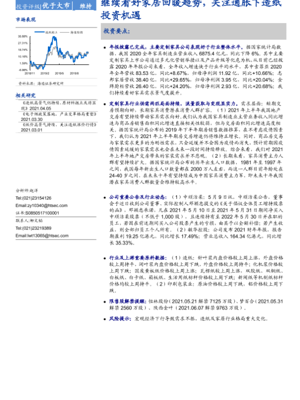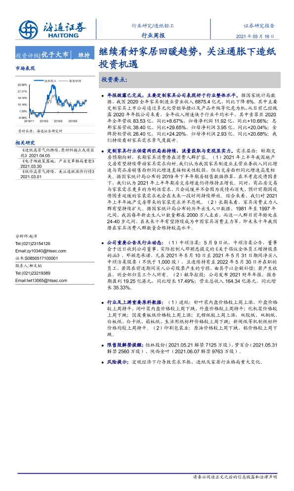 【海通证券】【20210516】20210516-海通证券-造纸轻工行业周报:继续看好家居回暖趋势,关注通胀下造纸投资机遇-9页