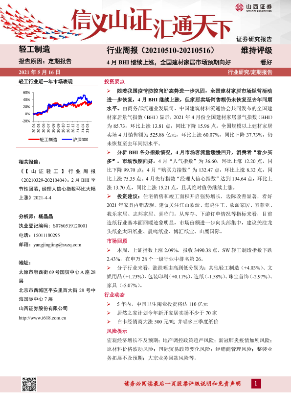 【山西证券】【20210516】20210516-山西证券-轻工制造行业周报:4月BHI继续上涨,全国建材家居市场预期向好-13页