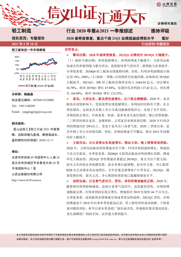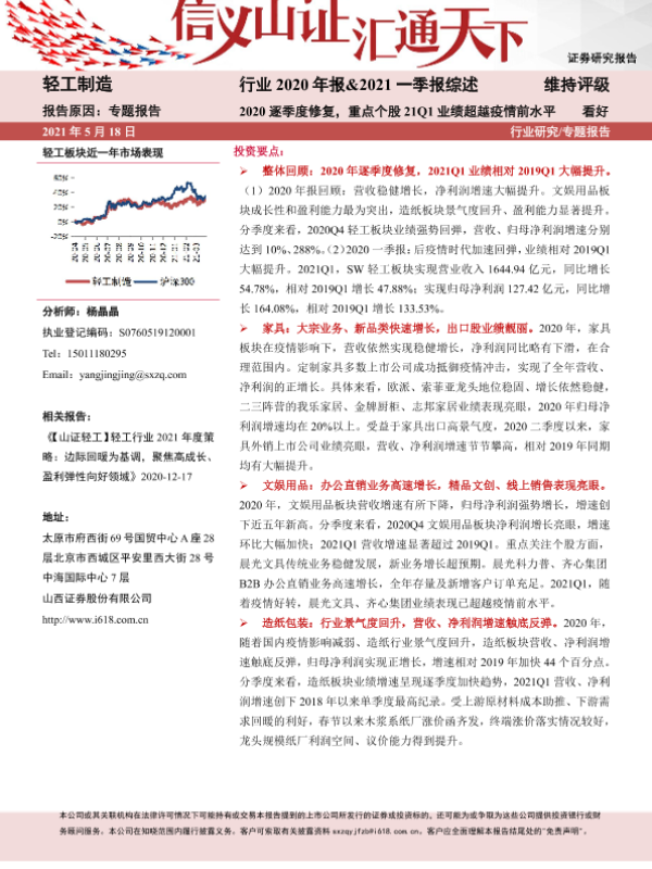 【山西证券】【20210518】轻工制造行业2020年报&2021一季报综述:2020逐季度修复,重点个股21Q1业绩超越疫情前水平-29页