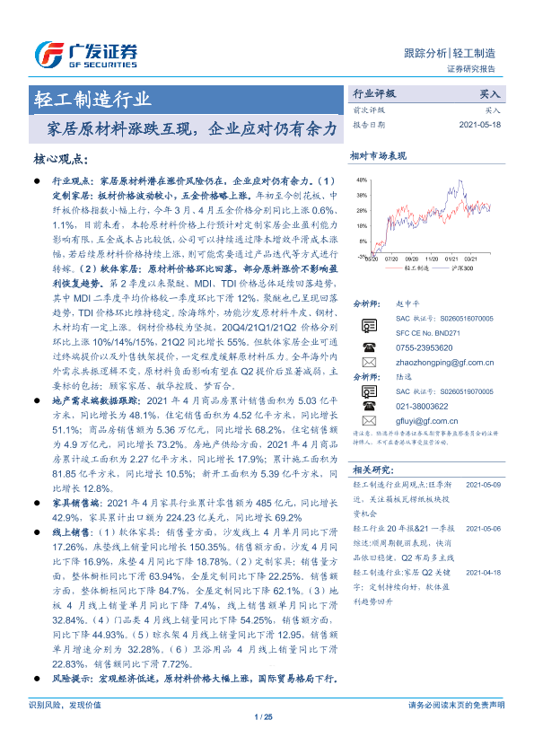 【广发证券】【20210518】轻工制造行业:家居原材料涨跌互现,企业应对仍有余力-25页