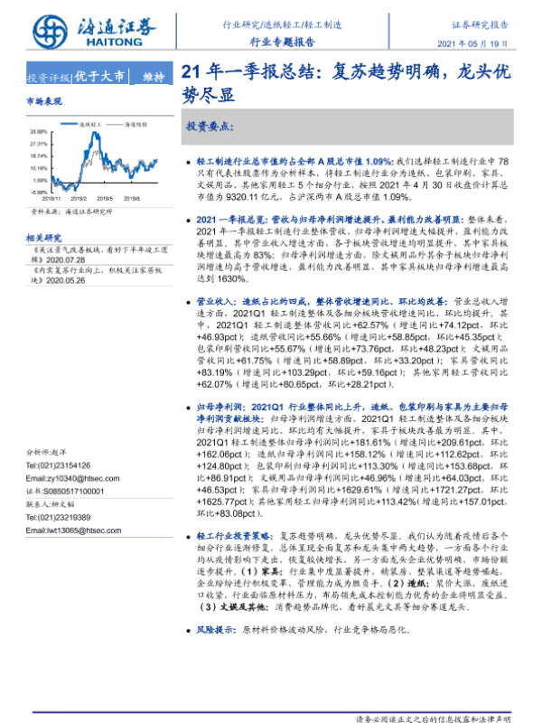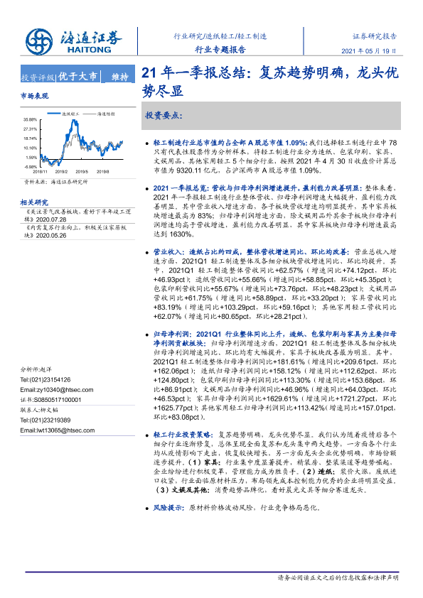 【海通证券】【20210519】20210519-海通证券-轻工制造行业专题报告:21年一季报总结:复苏趋势明确,龙头优势尽显-16页