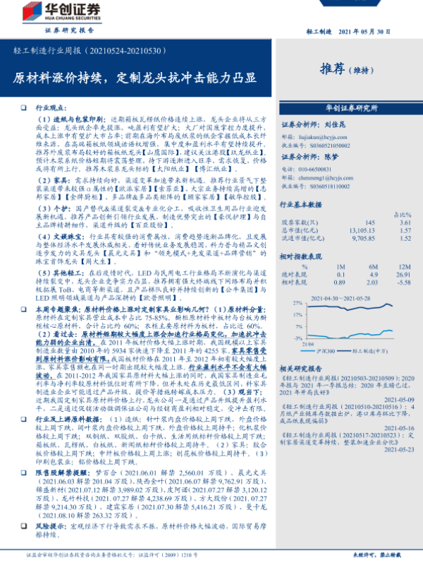【华创证券】【20210530】20210530-华创证券-轻工制造行业周报:原材料涨价持续,定制龙头抗冲击能力凸显-23页
