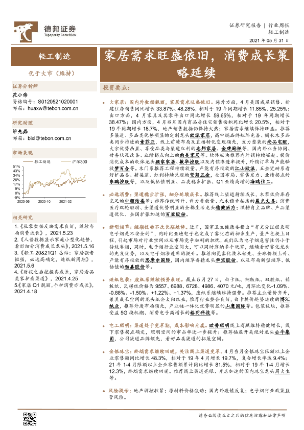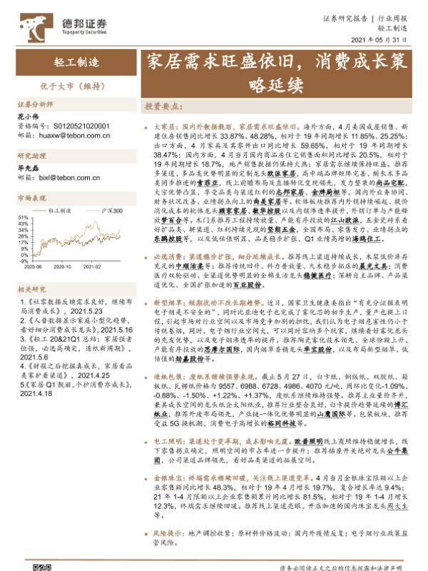 【德邦证券】【20210531】20210531-德邦证券-轻工制造行业周报:家居需求旺盛依旧,消费成长策略延续-17页