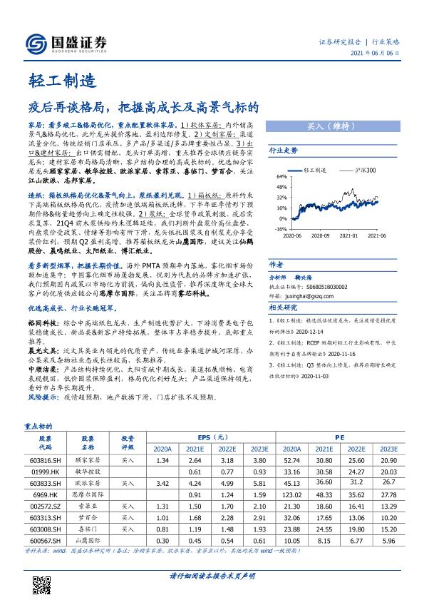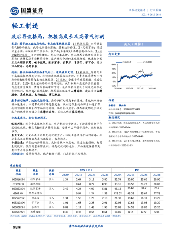 【国盛证券】【20210606】20210606-国盛证券-轻工制造行业策略:疫后再谈格局,把握高成长及高景气标的-43页
