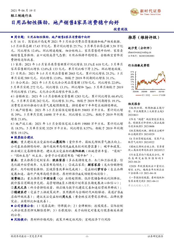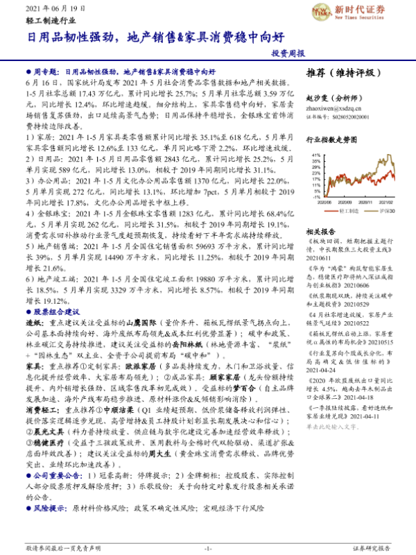 【新时代证券】【20210619】20210619-新时代证券-轻工制造行业投资周报:日用品韧性强劲,地产销售&家具消费稳中向好-17页