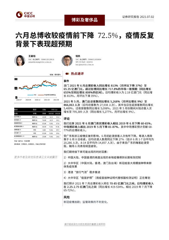 【中金公司】【20210702】20210702-中金公司-博彩及奢侈品行业:六月总博收较疫情前下降72.5%,疫情反复背景下表现超预期-8页