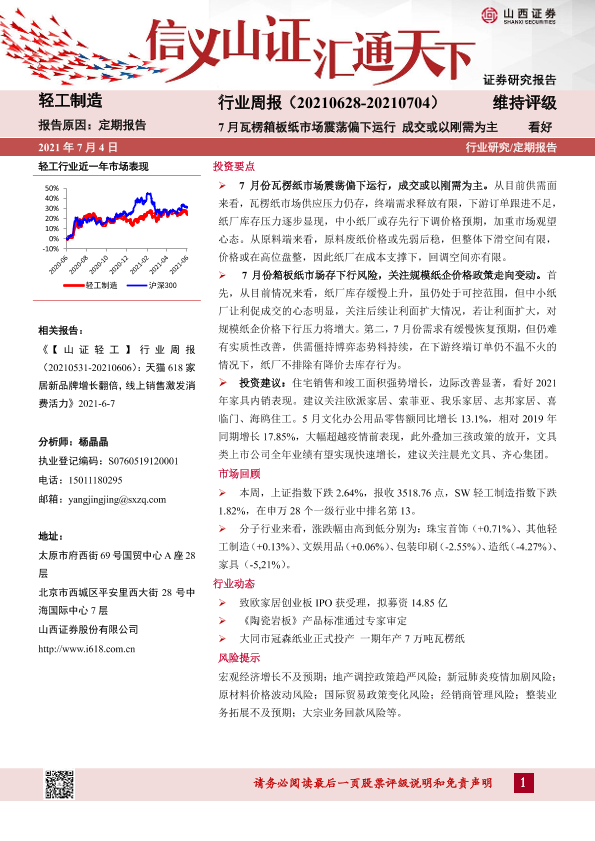 【山西证券】【20210704】20210704-山西证券-轻工制造行业周报:7月瓦楞箱板纸市场震荡偏下运行 成交或以刚需为主-13页