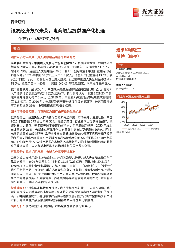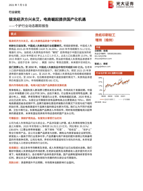 【光大证券】【20210705】个护行业动态跟踪报告:银发经济方兴未艾,电商崛起提供国产化机遇-11页