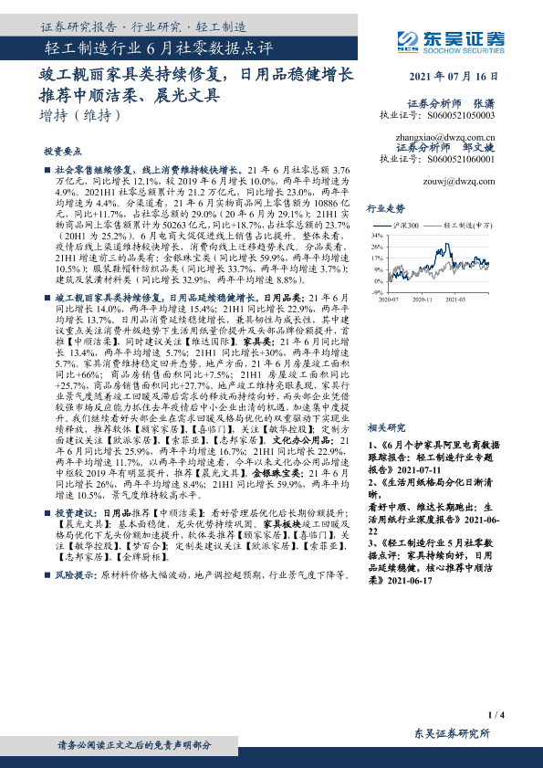 【东吴证券】【20210716】轻工制造行业6月社零数据点评:竣工靓丽家具类持续修复,日用品稳健增长-4页
