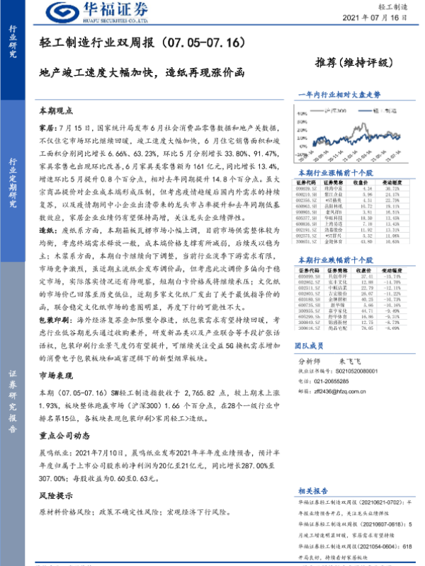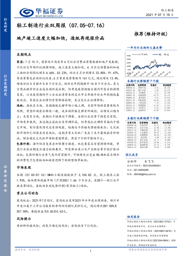 【华福证券】【20210716】轻工制造行业双周报:地产竣工速度大幅加快,造纸再现涨价函-11页
