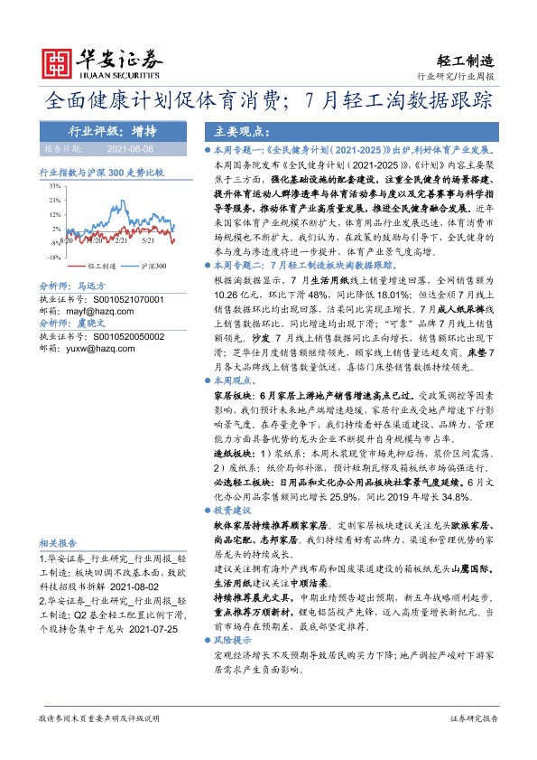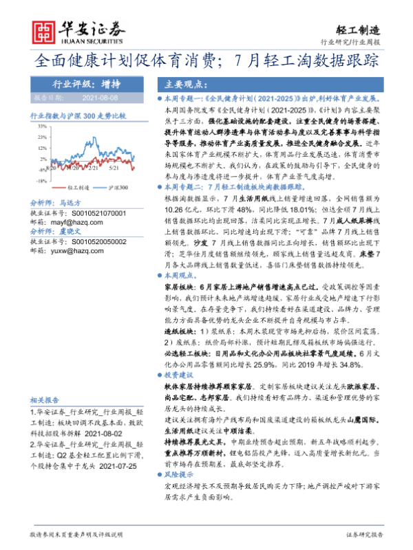 【华安证券】【20210808】轻工制造行业周报:全面健康计划促体育消费;7月轻工淘数据跟踪-16页
