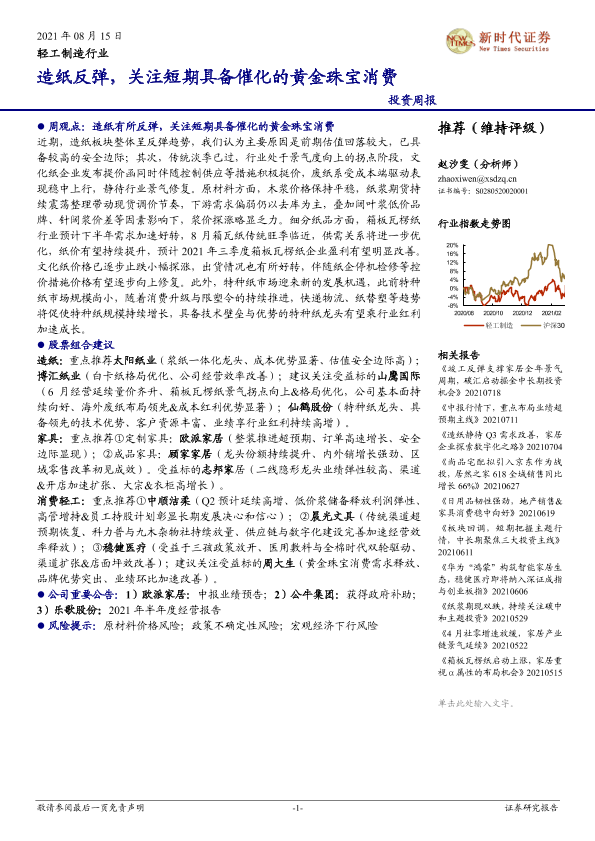 【新时代证券】【20210815】20210815-新时代证券-轻工制造行业投资周报:造纸反弹,关注短期具备催化的黄金珠宝消费-14页