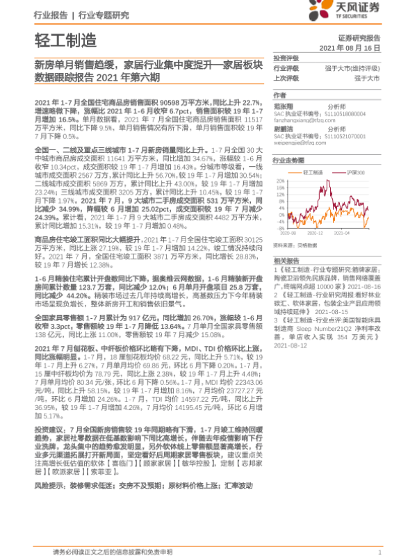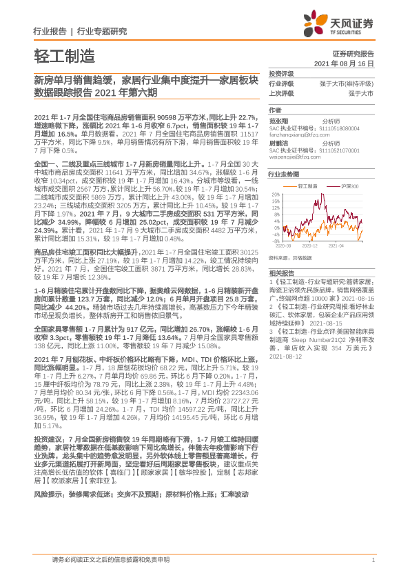 【天风证券】【20210816】新房单月销售趋缓,家居行业集中度提升-17页