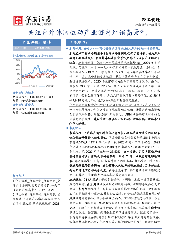 【华安证券】【20210829】轻工制造行业周报:关注户外休闲运动产业链内外销高景气-16页