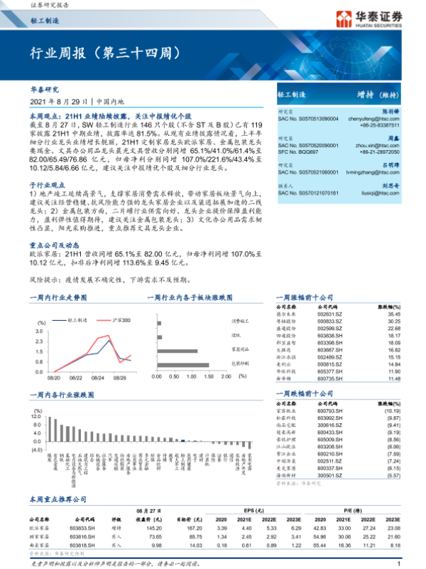 【华泰证券】【20210829】20210829-华泰证券-轻工制造行业周报(第三十四周)-25页