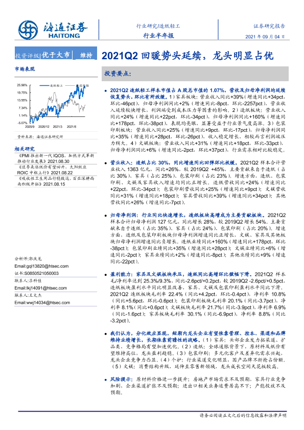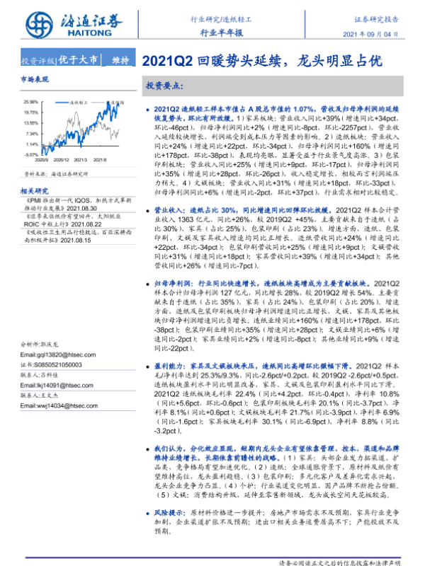 【海通证券】【20210904】2021Q2回暖势头延续,龙头明显占优-8页