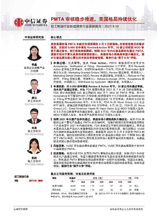 【中信证券】【20210910】轻工制造行业新型烟草行业跟踪报告:PMTA审核稳步推进,美国格局持续优化-8页