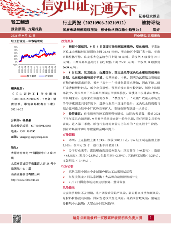 【山西证券】【20210912】20210912-山西证券-轻工制造行业周报:国废市场局部延续涨势,预计价格仍以稳中趋强为主-13页