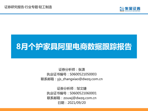 【东吴证券】【20210920】20210920-东吴证券-轻工制造行业专题:8月个护家具阿里电商数据跟踪报告-25页