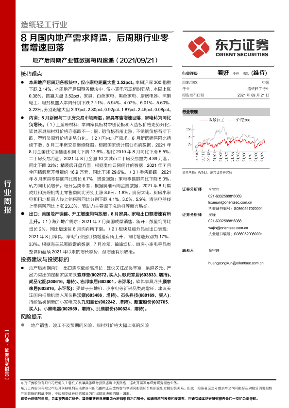 【东方证券】【20210921】20210921-东方证券-造纸轻工行业:地产后周期产业链数据每周速递-8月国内地产需求降温,后周期行业零售增速回落-14页