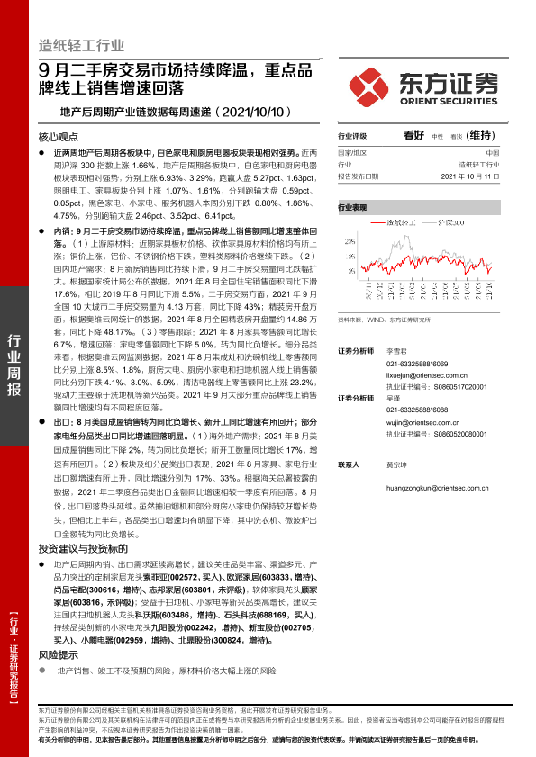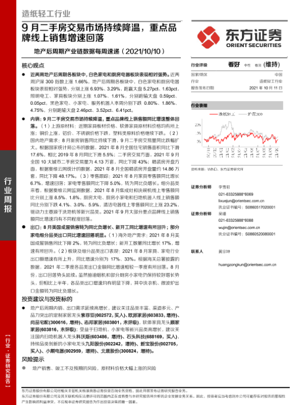 【东方证券】【20211011】20211010-东方证券-造纸轻工行业地产后周期产业链数据每周速递:9月二手房交易市场持续降温,重点品牌线上销售增速回落-14页