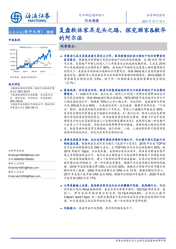 【海通证券】【20211010】20211010-海通证券-造纸轻工行业周报:复盘软体家具龙头之路,探究顾家&敏华的阿尔法-11页