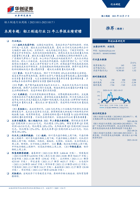 【华创证券】【20211017】20211017-华创证券-轻工制造行业周报:本周专题:轻工制造行业21年三季报业绩前瞻-22页