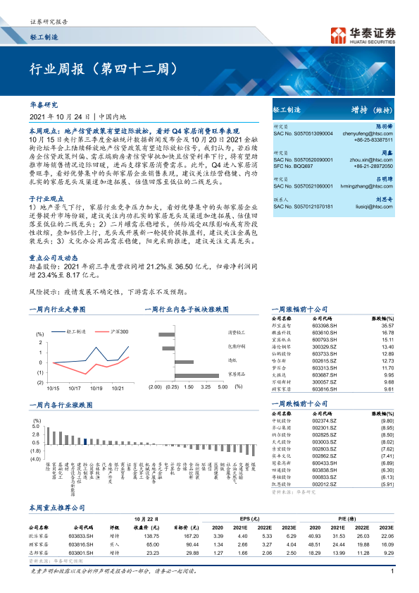 【华泰证券】【20211024】20211024-华泰证券-轻工制造行业周报(第四十二周)-15页
