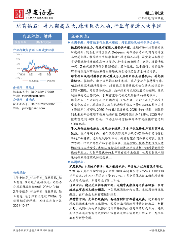 【华安证券】【20211024】20211024-华安证券-轻工制造行业周报:培育钻石:导入期高成长,珠宝巨头入局,行业有望进入快车道-27页