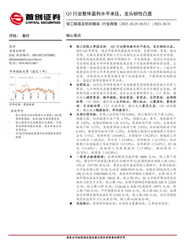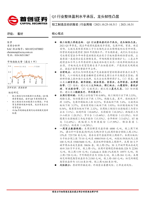 【首创证券】【20211031】20211031-首创证券-轻工制造及纺织服装行业周报:Q3行业整体盈利水平承压,龙头韧性凸显-17页