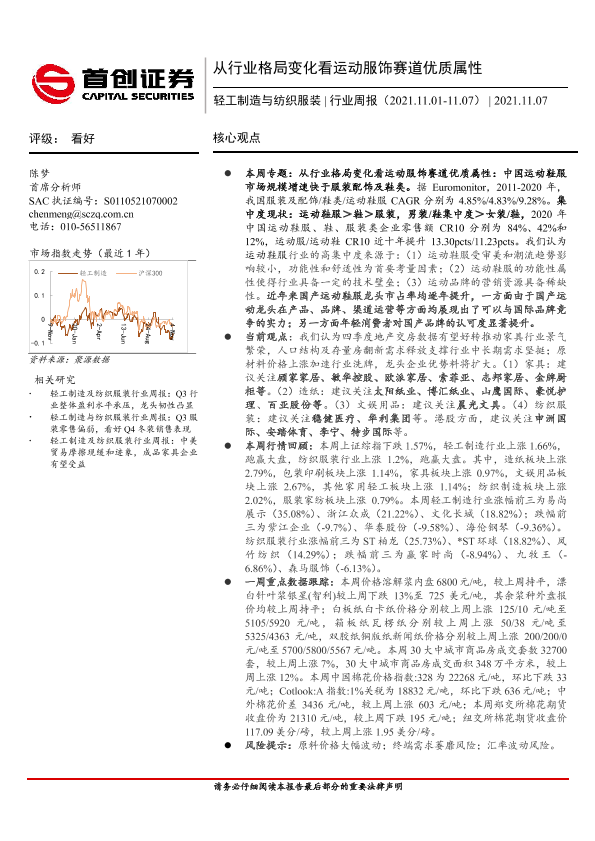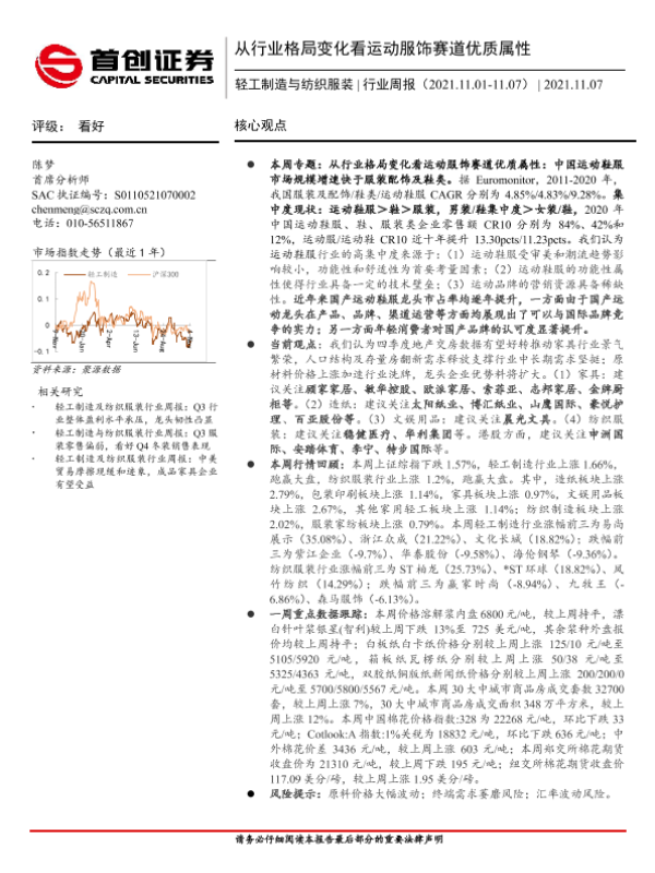 【首创证券】【20211107】轻工制造与纺织服装行业周报:从行业格局变化看运动服饰赛道优质属性-16页