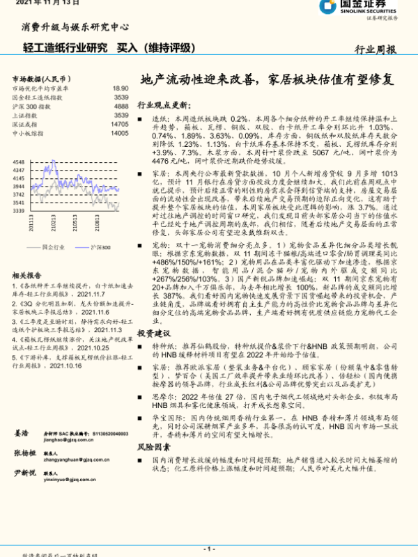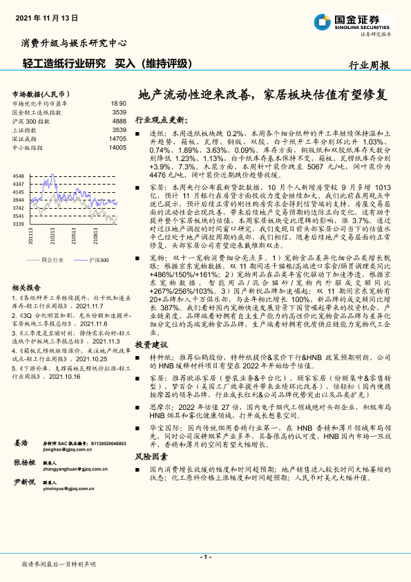 【国金证券】【20211113】20211113-国金证券-轻工造纸行业研究:地产流动性迎来改善,家居板块估值有望修复-14页
