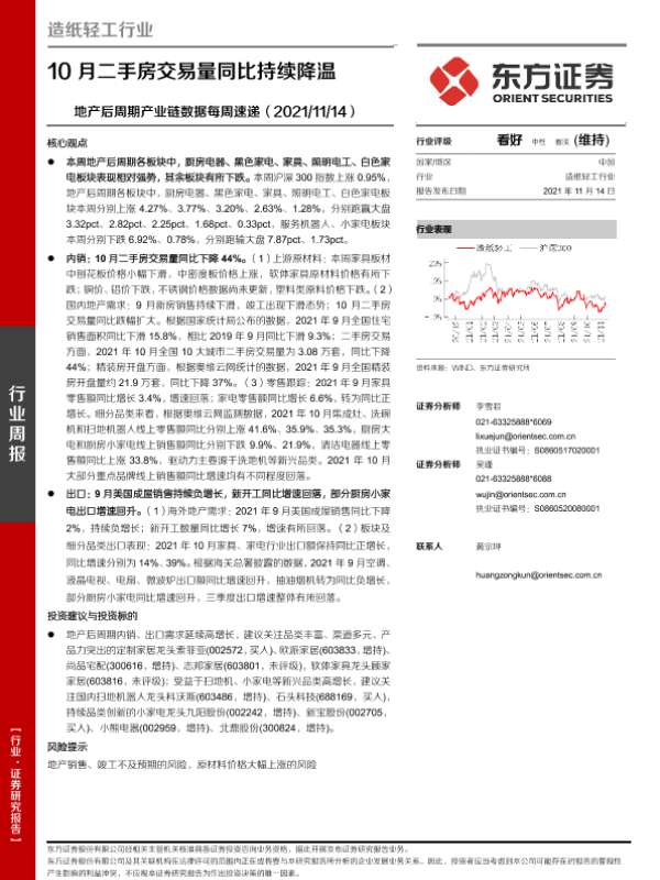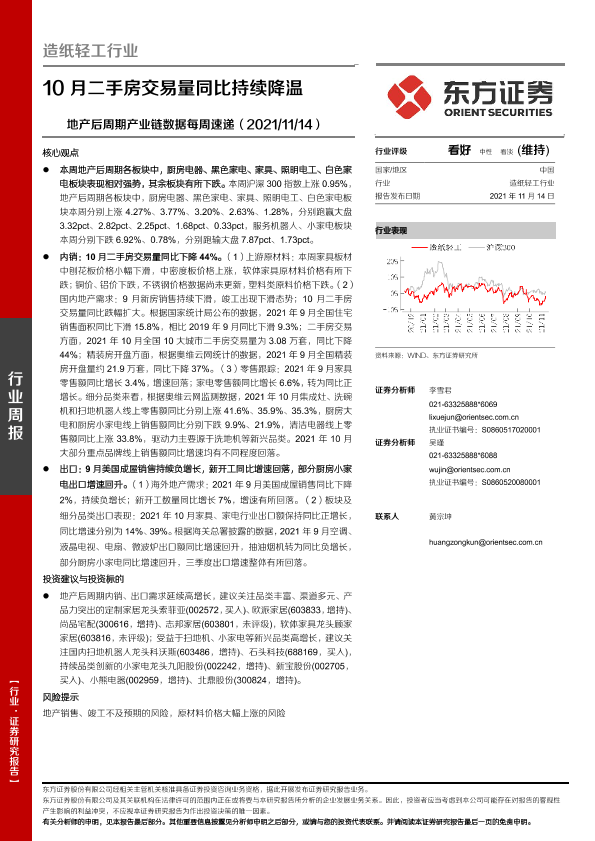 【东方证券】【20211114】20211114-东方证券-造纸轻工行业:地产后周期产业链数据每周速递:10月二手房交易量同比持续降温-14页