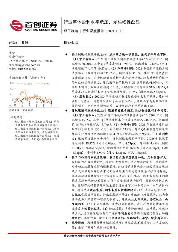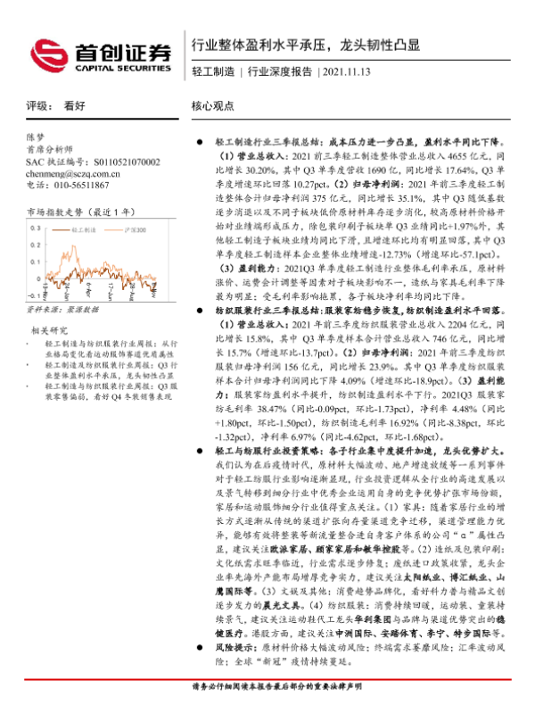 【首创证券】【20211113】20211113-首创证券-轻工制造行业深度报告:行业整体盈利水平承压,龙头韧性凸显-22页
