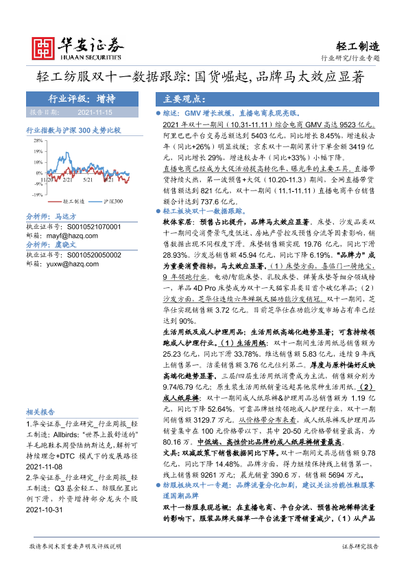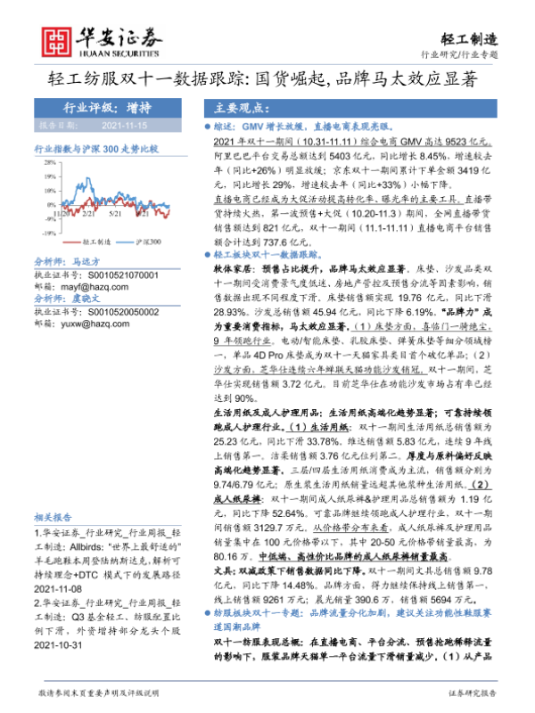 【华安证券】【20211115】轻工纺服双十一数据跟踪 国货崛起,品牌马太效应显著-28页