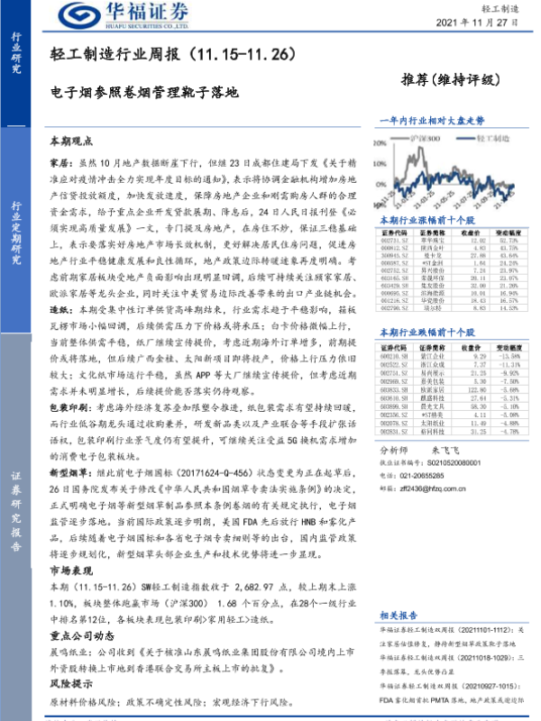 【华福证券】【20211127】20211127-华福证券-轻工制造行业周报:电子烟参照卷烟管理靴子落地-10页