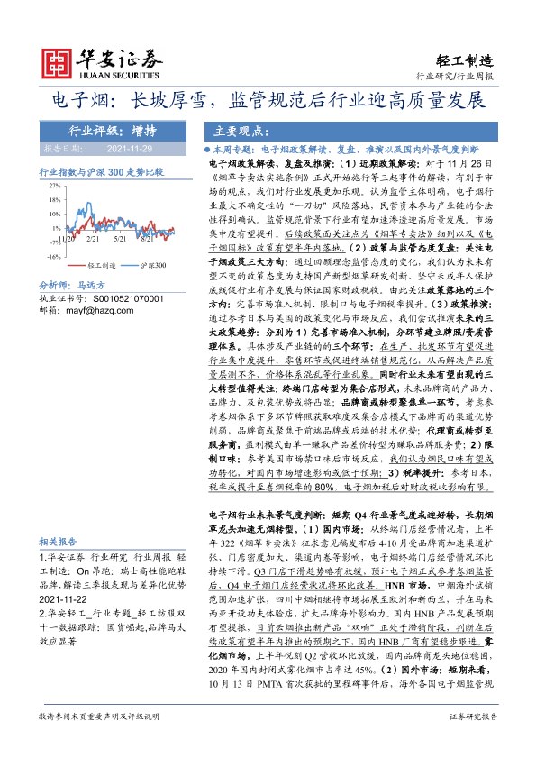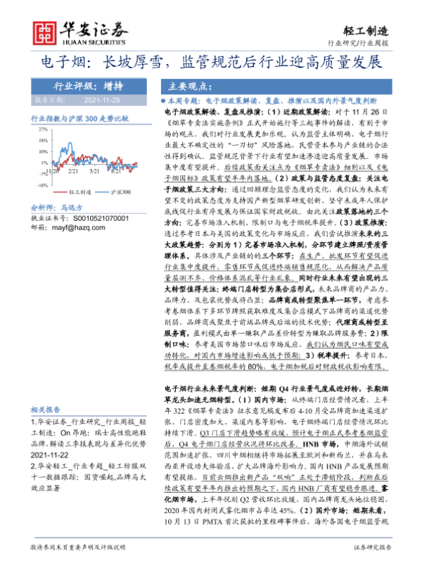 【华安证券】【20211129】电子烟:长坡厚雪,监管规范后行业迎高质量发展-27页