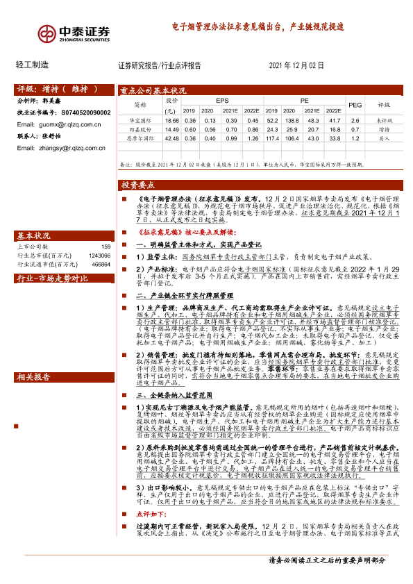 【中泰证券】【20211202】轻工制造行业点评报告:电子烟管理办法征求意见稿出台,产业链规范提速-3页